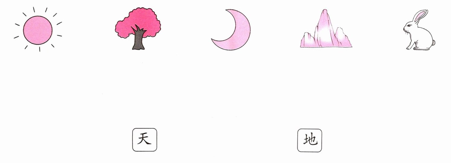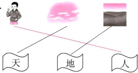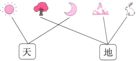 三、图中的事物,哪些是天上的?哪些是地上的?连一连。