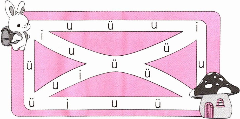 - 四、按 i—u—ü 的顺序帮小兔子画出回家的路线。