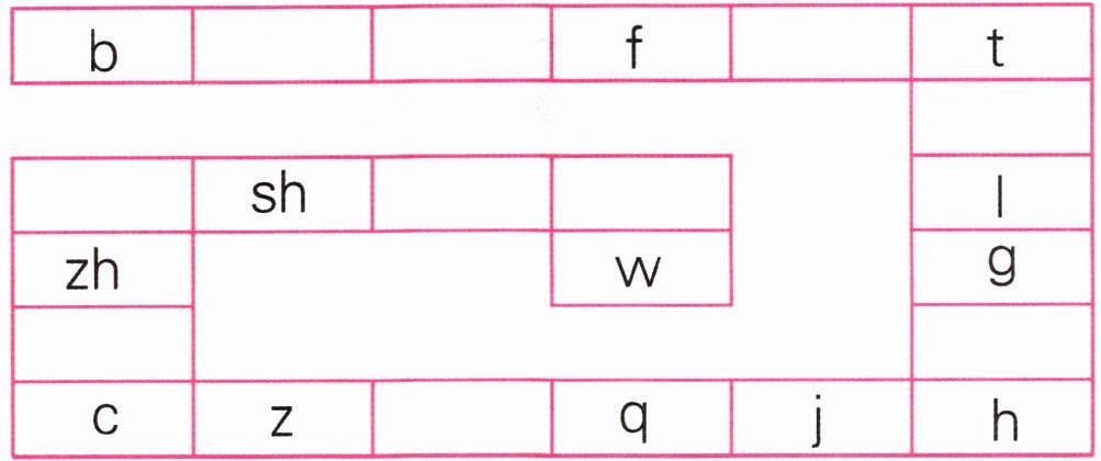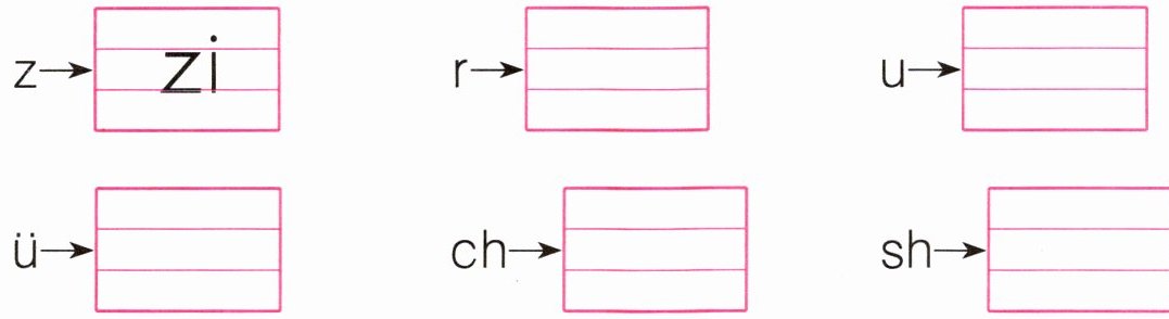 ü→$\boxed{}$ ch→$\boxed{}$ sh→$\boxed{}$