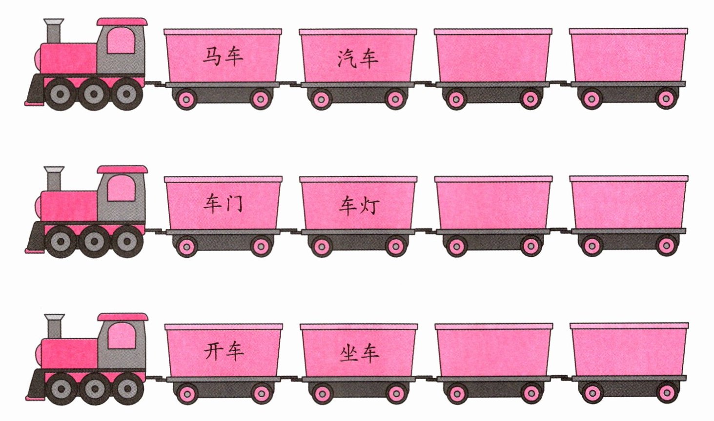 ①自行车 ②车窗 ③骑车 ④火车 ⑤车厢 ⑥上车