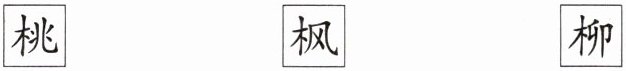 $\boxed{桃} \boxed{\overset{fēng}{枫}} \boxed{柳}$