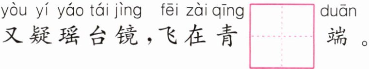 又疑瑶台镜,飞在青$\boxed{duān}$端。