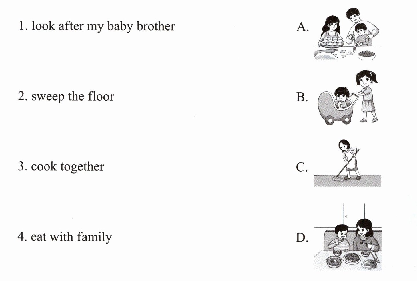 二、平时你会和家人一起做什么呢?看图片,连一连。