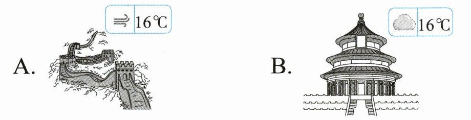 ) 1. It’s cloudy and cool in Beijing.A. 16℃ B. 16℃