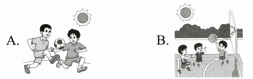 ) 2. It’s sunny today. We can play basketball in the park.A. B.
