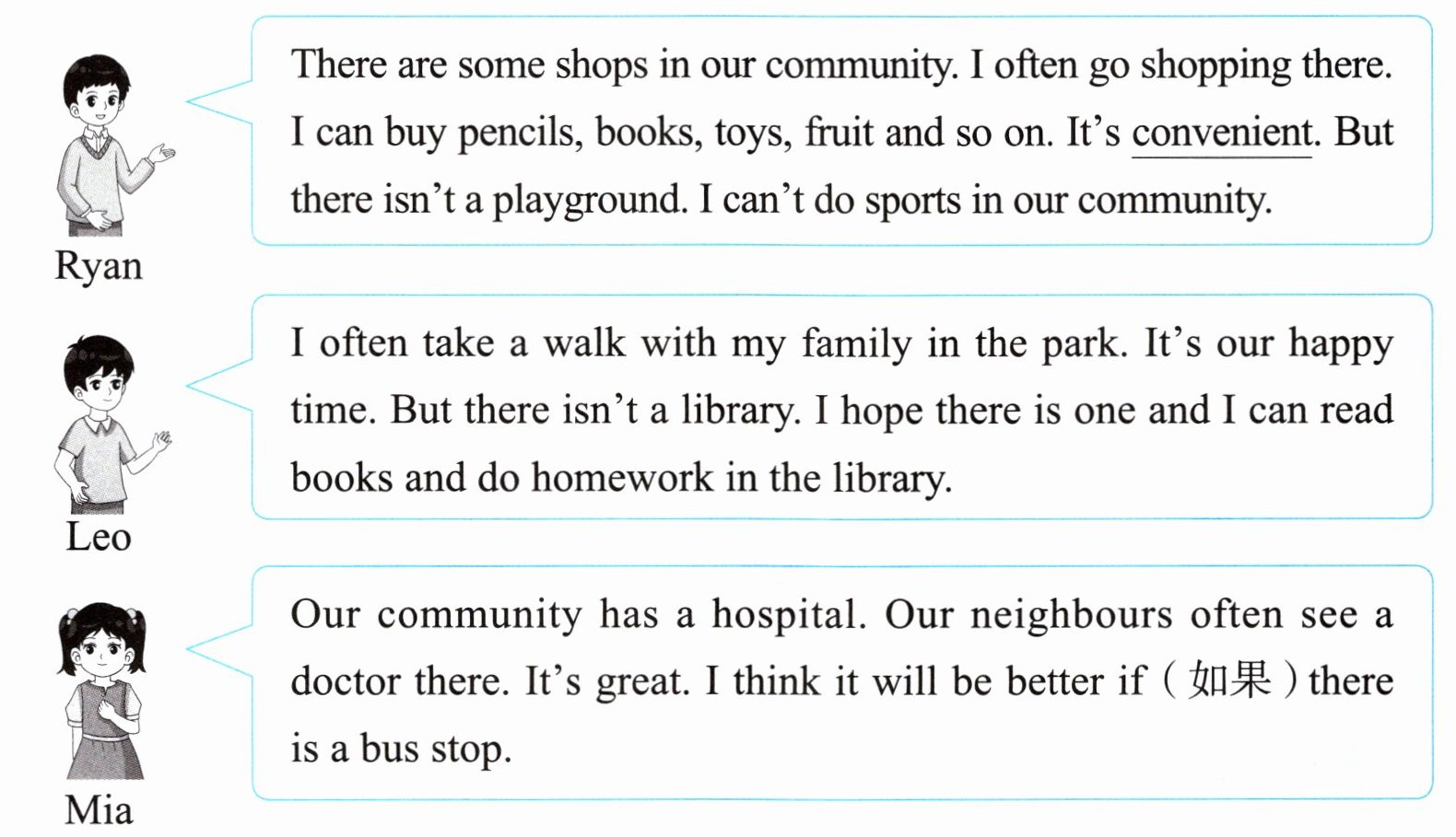 ( ) 4. Leo’s neighbours can see a doctor in the community.