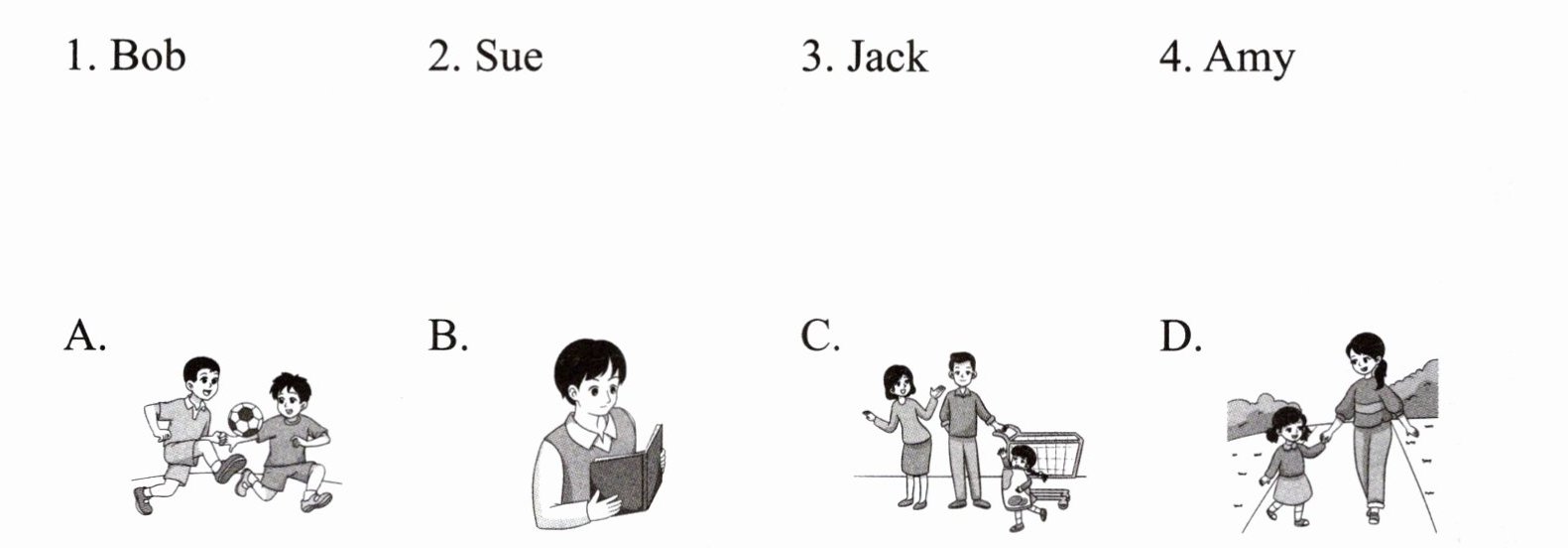 二、听录音,将小朋友与喜欢的社区活动连线。