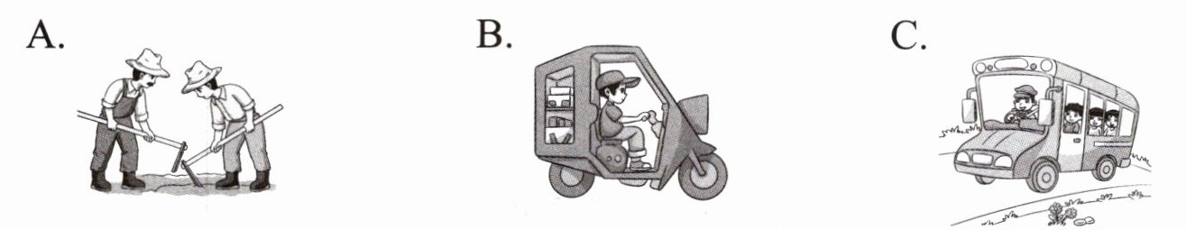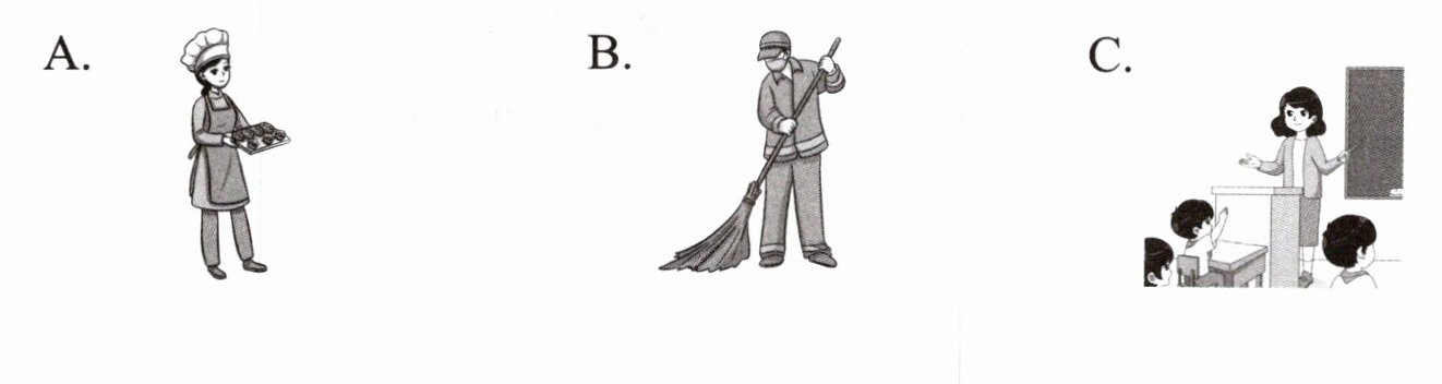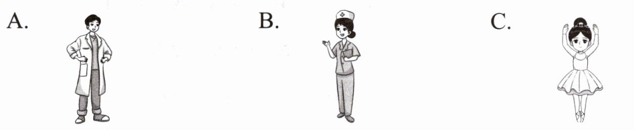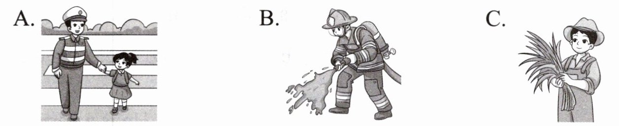 一、同学们正在谈论社区的工作者。读一读,选择正确的图片。