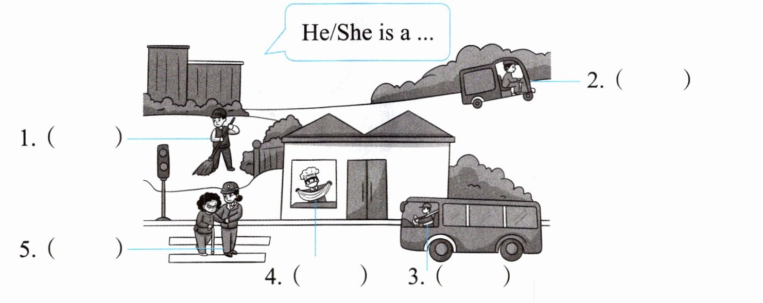 二、Jenny 正在介绍社区工作者。选择正确的单词,将序号写在括号里。