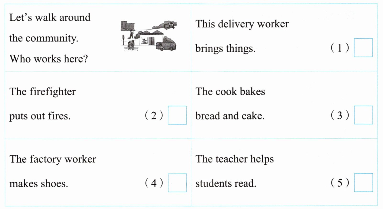 2. 你还知道哪些社区工作者?模仿语篇,写一写。