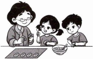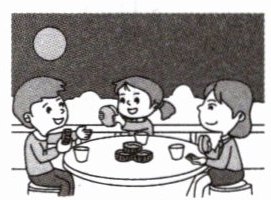 (2) 2.Some are eating mooncakes with their families.