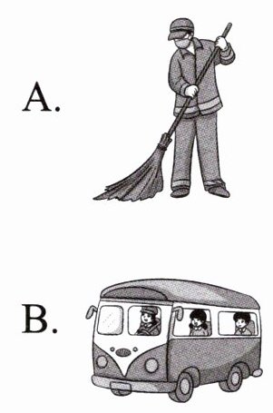 ) 1. Amy: Look! There is a cleaner.Ann: He is cleaning the floor.