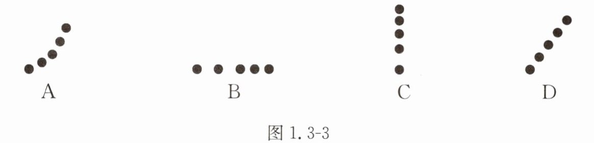 11. 利用每秒闪光10次的照相装置拍摄到的四个物体运动的频闪照片(黑点表示物体)如图1.3-3所示,其中做匀速直线运动的物体是(