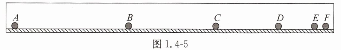 8. (多选)小明用频闪照相机(每隔$0.2s$闪拍一次)拍摄到的同一小球从$A点沿直线运动到F$点的频闪照片如图1.4 - 5所示。小明对照片进行了分析:他从$A$点起始,用刻度尺依次测量各点到$A点的距离s$,并记录在下方的表格中。