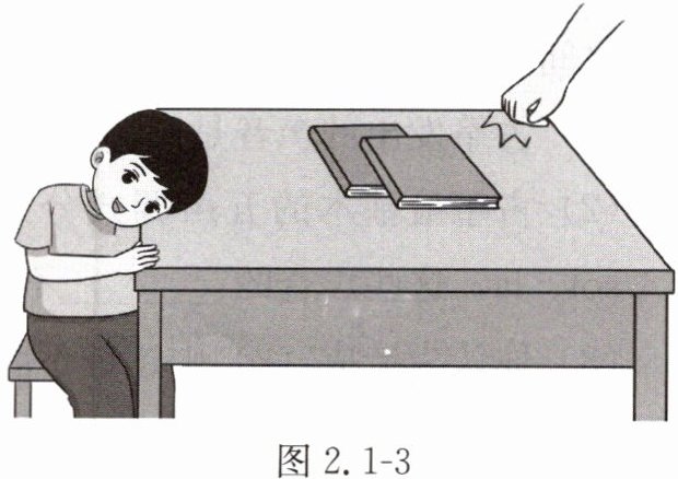 11. 小明将一只耳朵贴在桌面上,另一名同学用手轻敲桌面,如图2.1-3所示,小明听到了声音。小明认为由此可以证明固体可以传声,但是小红对此质疑,认为小明听到的声音有可能是通过空气传播而来的,请你补充实验步骤(不可增加实验器材),排除空气传声的干扰。