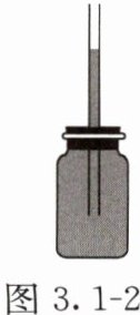 2. 如图3.1-2所示,在小瓶里装满红色的水,给小瓶配一个橡皮塞,橡皮塞上插进一根细玻璃管,用橡皮塞塞住瓶口。将小瓶放入标准大气压下的
