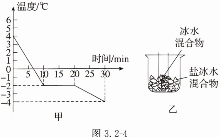 (选填“高”或“低”)了。(4)若将一个装有冰水混合物的试管放入正在熔化的盐冰水混合物中,如图3.2-4乙所示,试管中的冰水混合物中的冰会