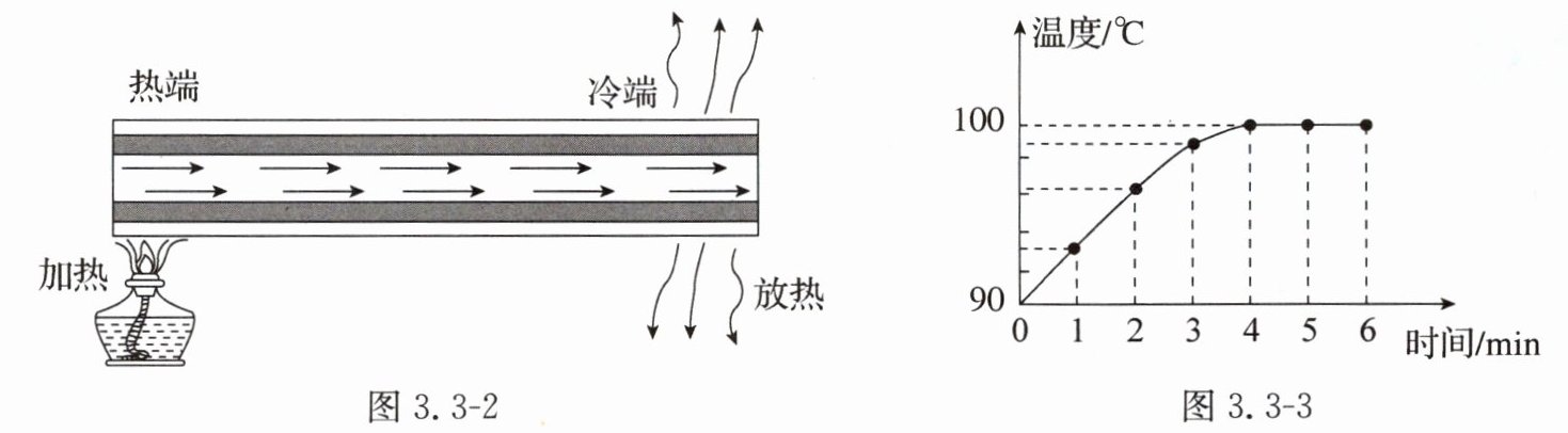 3. 热管原理示意图如图3.3 - 2所示,管内衬有一层叫吸液芯的多孔材料,里面装有酒精或其他液体,热管可以把高温部分的热量迅速传递到低温部分,其主要是利用了内装物质在高温部分