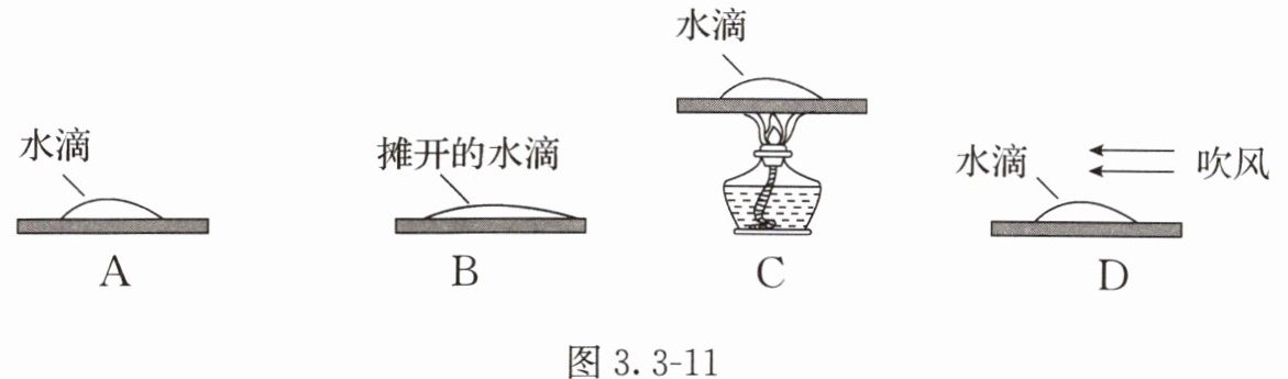 9. 敏敏为探究水蒸发的快慢与哪些因素有关,在四块相同的玻璃板上各滴一滴质量相同的水,如图3.3-11所示。