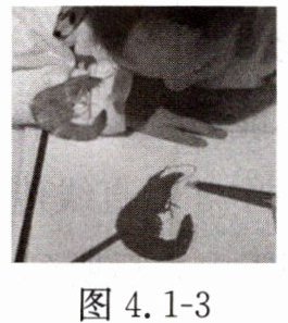 3. 一种巧妙的“灯影画虾法”如图4.1-3所示:让台灯的光照着虾,根据白纸上的“虾影”就可以画出好看的虾。虾影的形成是因为