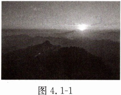 3. 日出时有时能看到如图4.1-1所示的景象,请你尝试在下面空白处画出太阳和它的光芒的示意图。