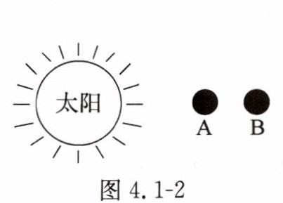 形成的。发生月全食时,若太阳、地球、月球的位置如图4.1-2所示,则图中的A是地球