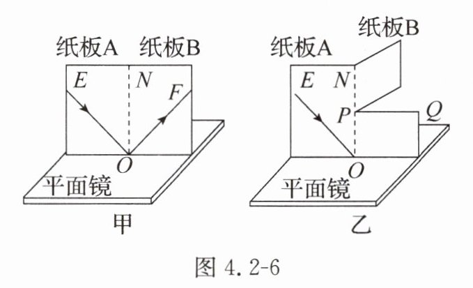 (4)在图乙中,将纸板B沿PQ剪开,把纸板B的上半部分向后折转。实验时发现在纸板B的上半部分