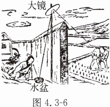 10. 汉代《淮南万毕术》中著有:“取大镜高悬,置水盆于其下,则见四邻矣。”其情境如图 4.3 - 6 所示,该装置是世界上有记载的最早的潜望镜,其中涉及的光学知识分析正确的是(