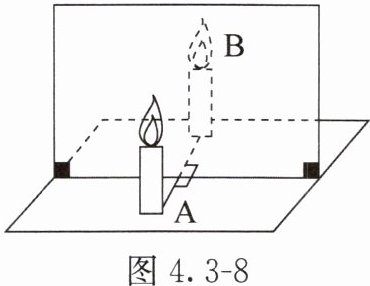 13. 小丽同学在做探究平面镜成像的特点的实验时,将一块玻璃板竖直立在水平台面上的白纸上,再取两支完全相同的蜡烛,点燃玻璃板前的蜡烛 $ A $,进行观察,如图 4.3 - 8 所示。在此实验中: