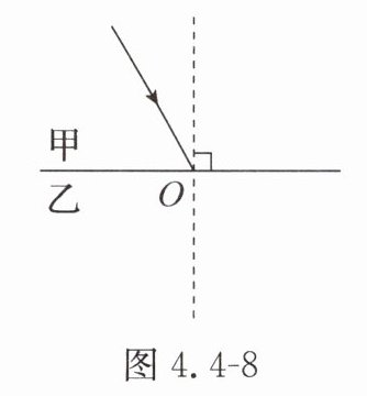 10. 探究光的折射时,折射角与入射角的关系如图4.4-8所示,使一束光从甲介质斜射入乙介质,测量并记录入射角和折射角大小。改变光束射向$ O $点的角度,进行多次实验,数据如表格所示: