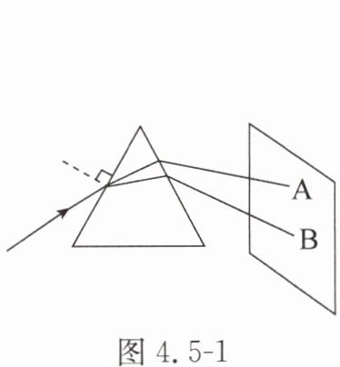 1. 如图4.5-1所示,让一束太阳光照射三棱镜,射出的光射到竖直放置的白屏上,在白屏上形成一条彩色光带,若白屏上A、B是光带边缘的色光,则A为