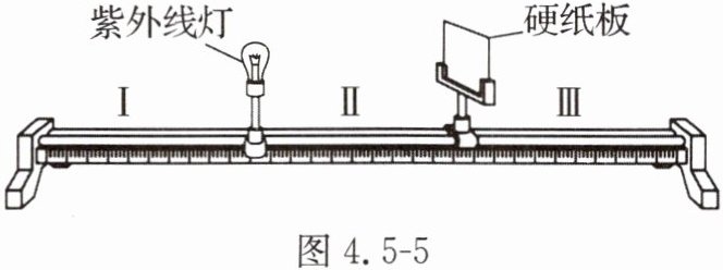(2)少量的紫外线照射是有益的,过量的紫外线照射会损伤皮肤。利用紫外线能使荧光物质发光的特性,小明想检验某防晒霜对紫外线的阻挡作用,利用图4.5-5所示的实验装置在暗室及一定防护下进行实验: