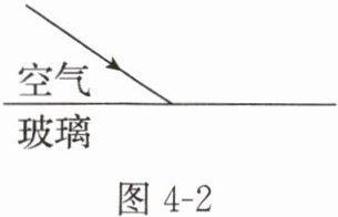2. (安徽中考)光线是表示光的传播路径和方向的物理模型。一束光从空气斜射到玻璃砖表面,一部分光射进玻璃中,另一部分光返回到空气中,请在图4-2中大致画出该入射光的折射光线和反射光线。