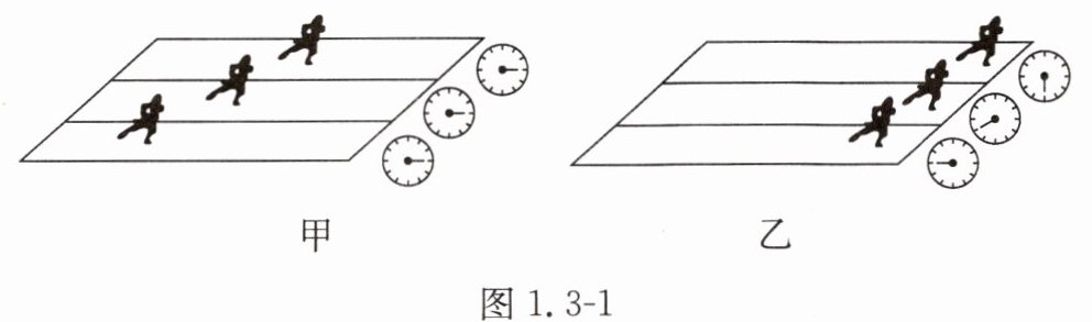 1. 田径运动会上运动员奋力奔跑的场景如图1.3-1所示,比赛开始后,观众通过比较