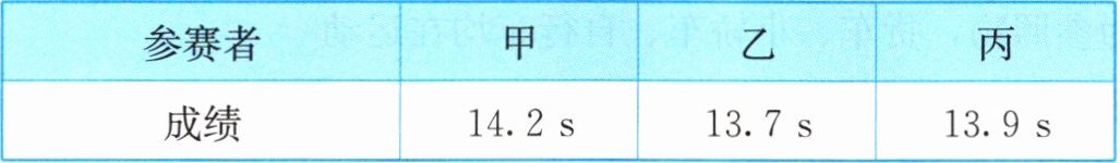 1. 体育课上,甲、乙、丙三名同学进行百米赛跑,若他们的成绩如表格所示,则获得第一名的是