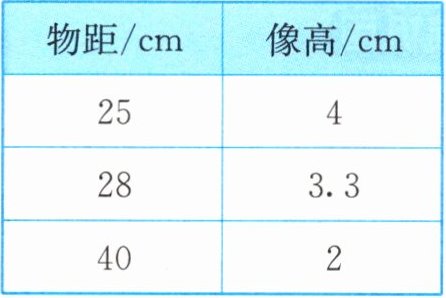 cm。(2)从表中的数据可以看出:当像距小于物距时,像的高度与物体的高度的比值