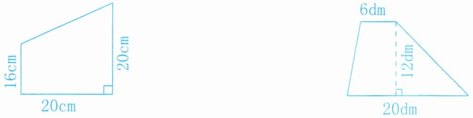 此梯形$a = 6dm$,$b = 20dm$,$h = 12dm$,则$S=(6 + 20)×12÷2=156dm^{2}$。