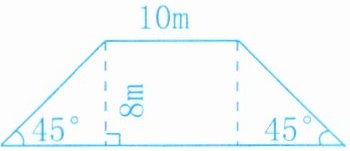 因为该梯形两底角都是$45^{\circ}$,从梯形上底两端向下底作高,会得到两个等腰直角三角形,所以梯形的高$h = 8m$,上底$a = 10m$,下底$b=10 + 8×2=26m$(两个等腰直角三角形斜边为$8m$,水平边长也为$8m$),则$S=(10+26)×8÷2=144m^{2}$。