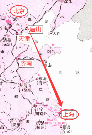 2.(1)红框内填写北京。黑框内从上到下依次填写:唐山、天津、济南、上海。(2)学生 工人 商人(3)圈画:如图所示。转移方向:从北京到上海。