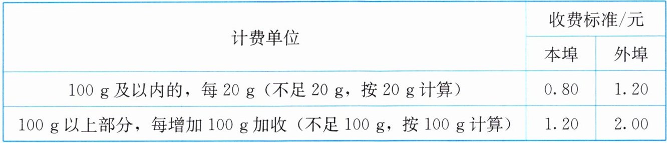 (1)亮亮寄给外埠报社的编辑老师一封$245g$的信函,应付邮费多少元?