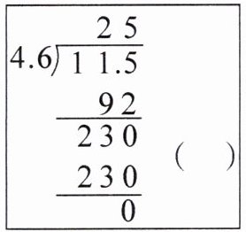 $ \begin{array} { r } { 2 5 } \\ { 4. 6 \longdiv { 1 1. 5 } } \\ { \frac { 9 2 } { 2 3 0 } } \\ { \frac { 2 3 0 } { 0 } } \end{array} $