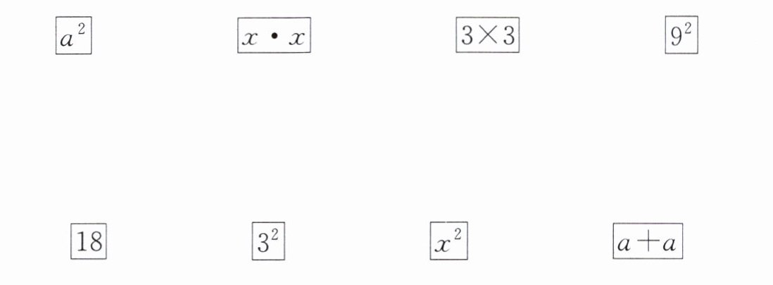 $\boxed{a^{2}}$ $\boxed{x\cdot x}$ $\boxed{3×3}$ $\boxed{9^{2}}$