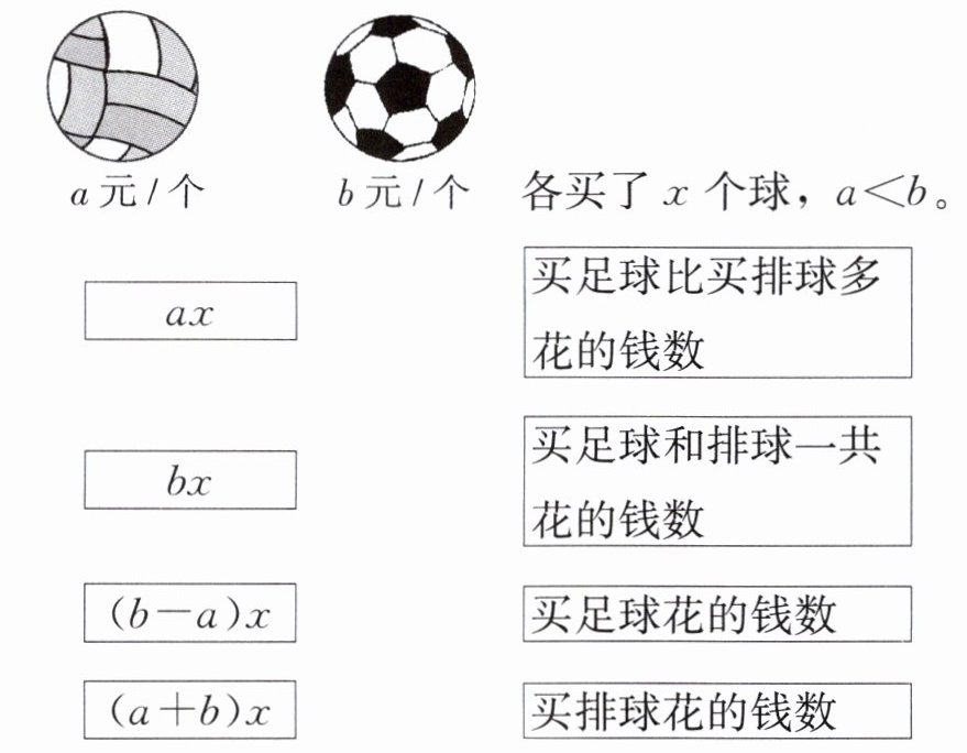 (a + b)x -> 买足球和排球一共花的钱数