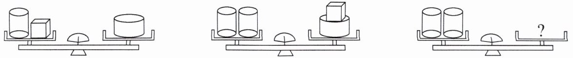 4. 图中第一架天平和第二架天平平衡,那么第三架天平的右面放(