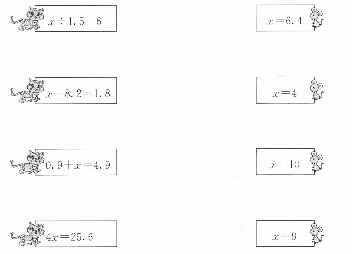 (3) $0.2x = 1.8$ (4) $x÷0.9 = 4.5$