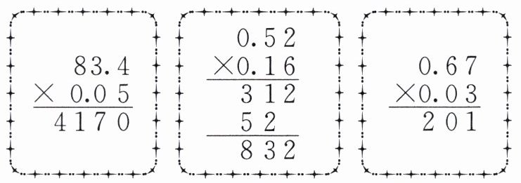 我发现:积的小数位数不够时,要在前面用(