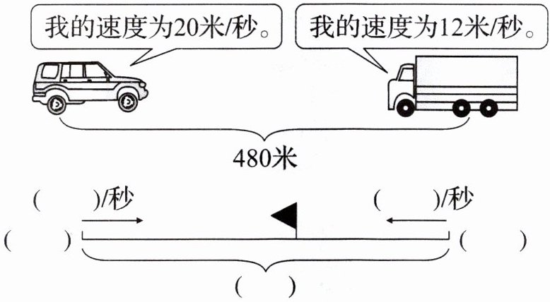 吉普车和货车同时出发,$x$ 秒两车相遇。