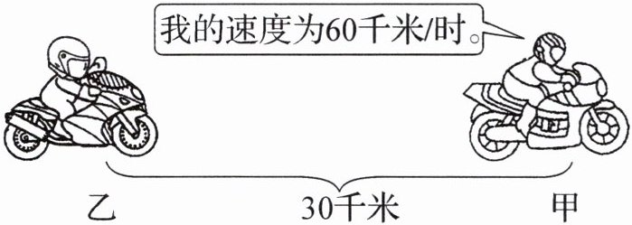 5. 甲、乙两人骑摩托车同时从村里出发去县城办事,1.5 小时后,乙车落后 30 千米。求乙车的速度。