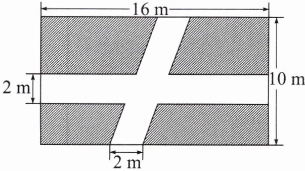 7. 如图,在一块长为16 m、宽为10 m的长方形草地中间修了两条路,一条是平行四边形的,一条是长方形的,那么剩余有草的面积是多少平方米?