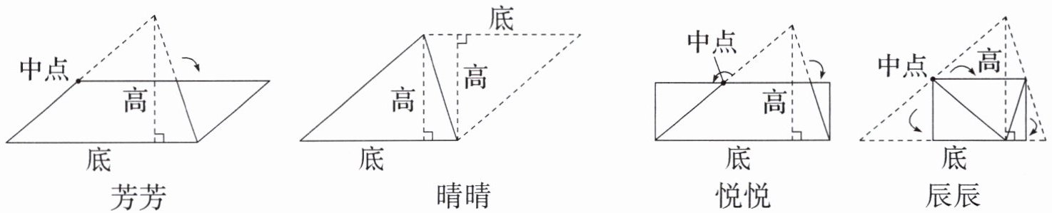 3. 同学们在研究如何推导出三角形的面积公式时,想到了以下几种方法。